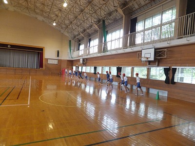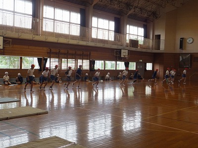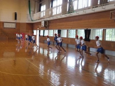 グランドコンディションが良くなかったので、体育館でリレーをしました。