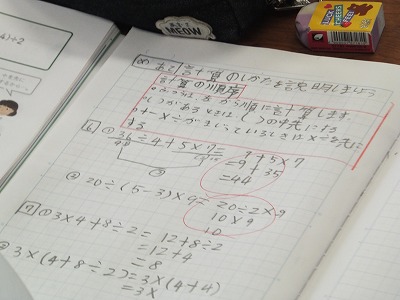 先日、計算のきまりについて学習しましたが、そのきまりに従って計算できれば、計算の仕方が説明できますね。逆に説明できなければ、まだきまりが身に付いていないということです。