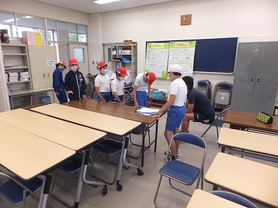 補助の仕方について、説明を聞いています。