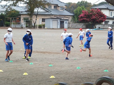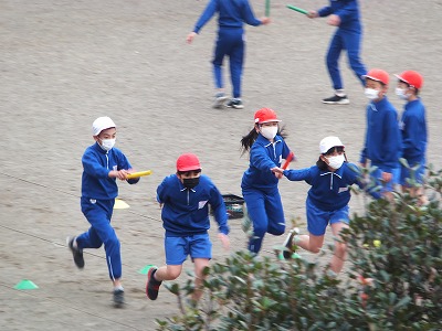 グランドコンディションが良くなかったので、体育館でリレーをしました。