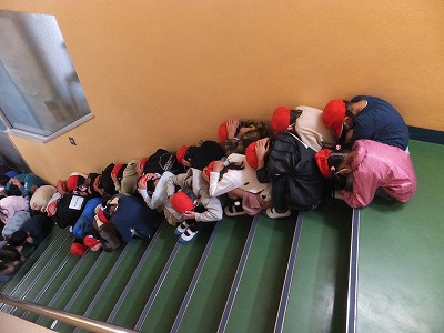 1年生は、階段に避難しました。