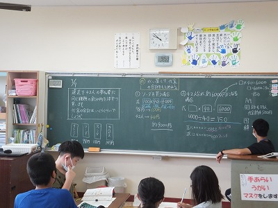 ワークシートに書いたあと、黒板に振り返りを書きました。