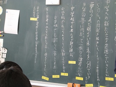 今年も、6年生と中学3年生を招いて、打ち上げ花火が計画されています。後日通知は差し上げますが、今日は、打ち上げ花火の外側に貼る紙にどんな言葉を書くか話し合いました。