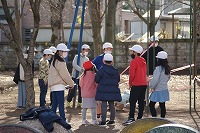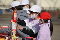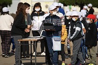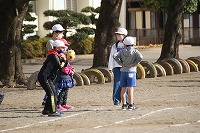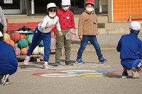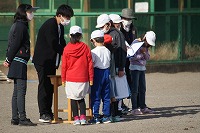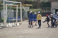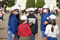 5年生の班長が、下級生を連れてゲームの場所に移動していきます。