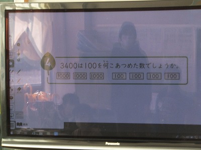 算数の時間に、100を23個集めるといくつになるかを学習しました。