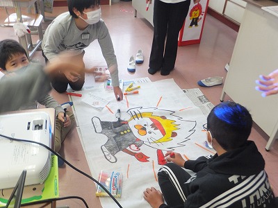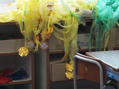 赤組マスコットキャラクターを旗にしています。だいぶ進んできましたね。