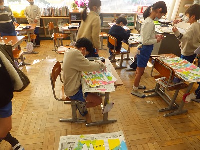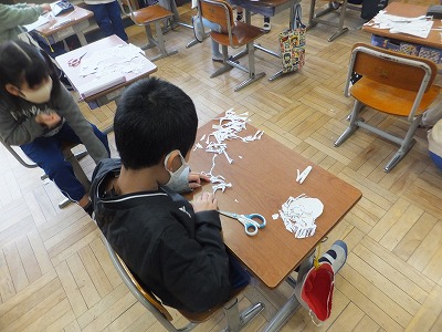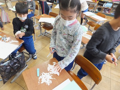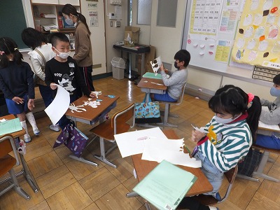 宝は、子供たちが折った折り紙です。教室のいろいろなところに隠しました。