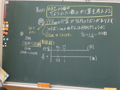 0.8mの代金が96円のリボンがあります。1mの代金はいくらですか?