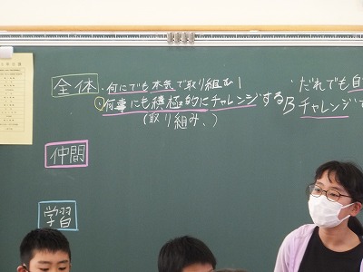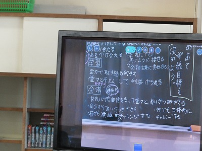 学級活動の時間に、学級目標を決める話合いをしました。