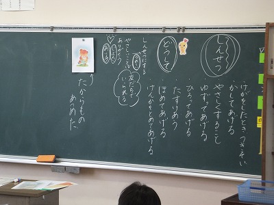 ワークシートに書いたあと、黒板に振り返りを書きました。