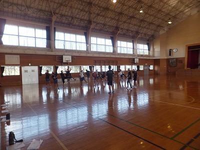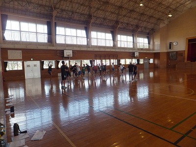 グランドコンディションが良くなかったので、体育館でリレーをしました。