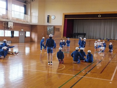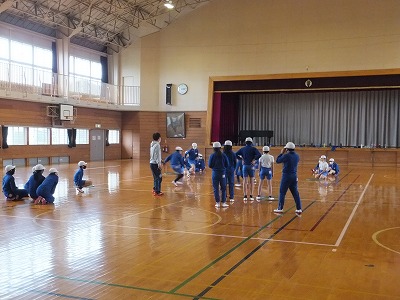 今日は、体育館で走ることを中心に体力づくりをしました。
