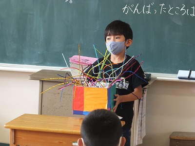自分が作った「うきうきぼっくす」を友達に紹介します。