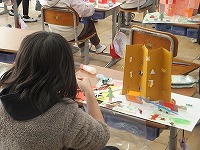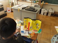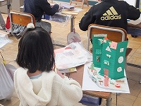 版画もいよいよ刷りに入りました。終わった子は、デザインをやっています。