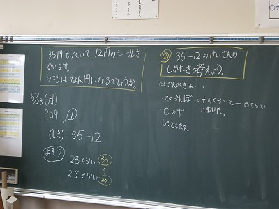 ワークシートに書いたあと、黒板に振り返りを書きました。