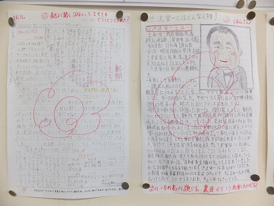 2組の教室に、よくやっている自学のノートのコピーが貼ってありました。