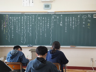 ワークシートに書いたあと、黒板に振り返りを書きました。