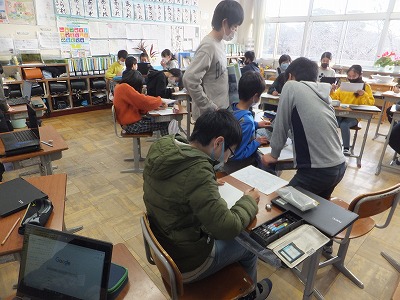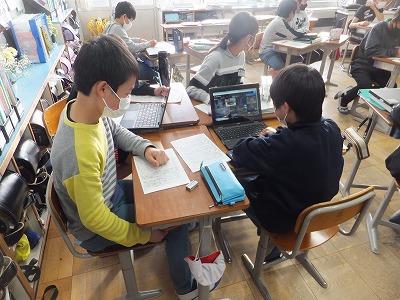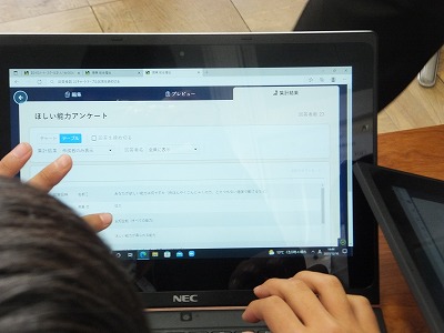 ロイロノートを使って、アンケートを友だちに答えてもらってまとめている子もいます。