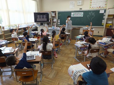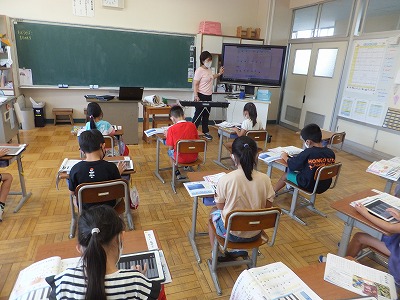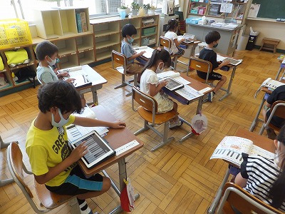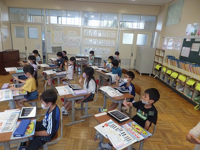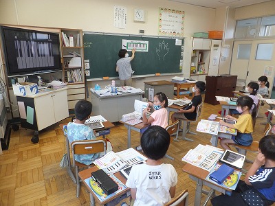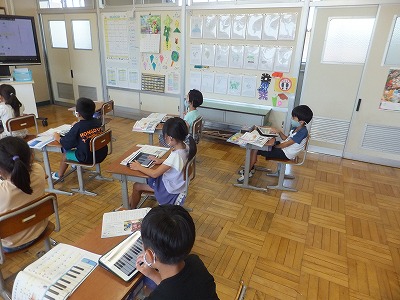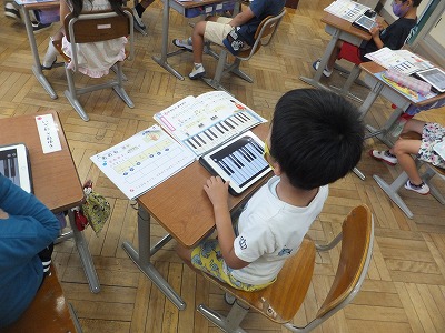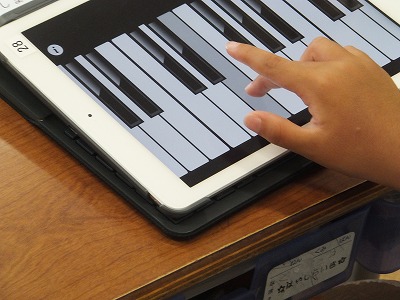 音楽の時間に、感染症予防のため鍵盤ハーモニカを一斉で吹くことができません。そこで、代わりにiPadで練習しました。