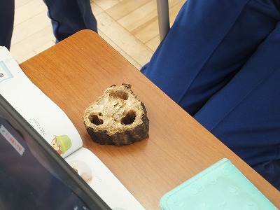 輪ゴムを鳴らすので、いい音とまではいきませんでしたが、自分の作った楽器で嬉しそうに音を出していました。