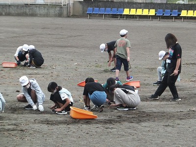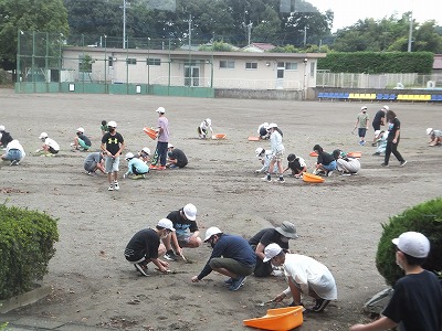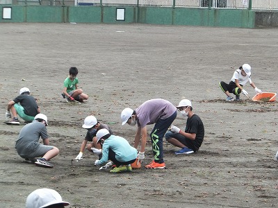 朝の時間を利用して校庭の除草作業をしました。