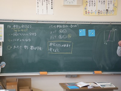 この時期の子供たちにとっては、具体物を操作して半分という概念を理解していくことが大切です。