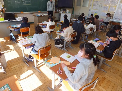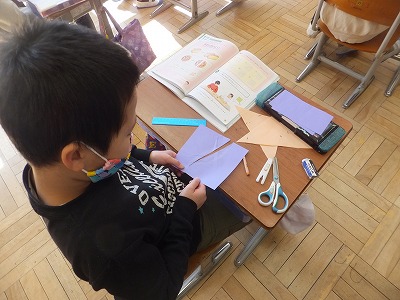 宝は、子供たちが折った折り紙です。教室のいろいろなところに隠しました。