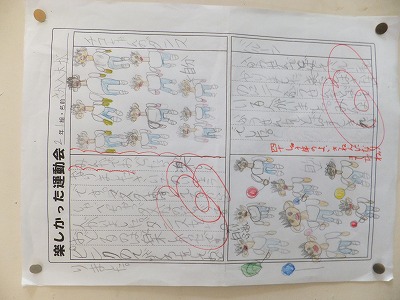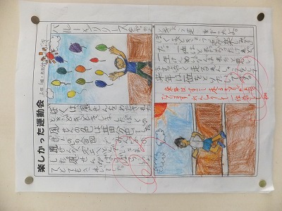 教室の廊下壁面に、運動会新聞が掲示されていました。いくつか紹介します。