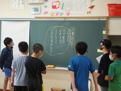 ワークシートに書いたあと、黒板に振り返りを書きました。
