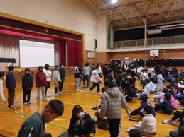 今日は、上三川町役場主催による「防災訓練」を実施しました。本校体育館が避難所になった想定でテント、発電機等が設置されました。訓練に参加した4年生は、避難する際の注意等を真剣に聞き、考え発表していました。