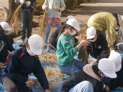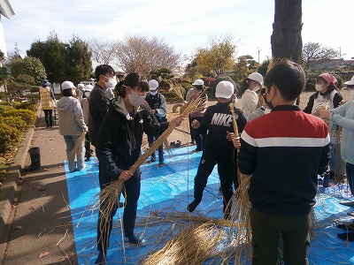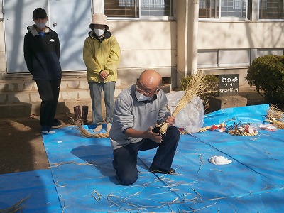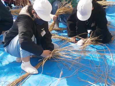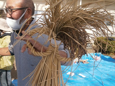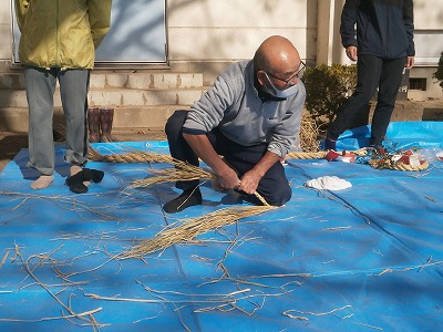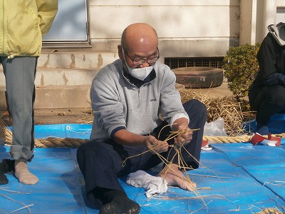 上野長一先生にしめ縄の作り方をご指導いただきました。