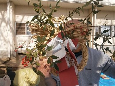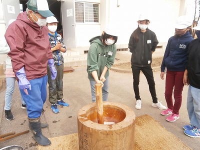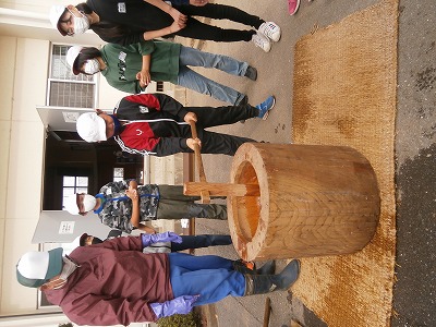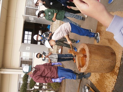 17日に、餅つきとしめ縄づくりをしました。