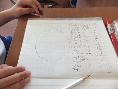 今日は、コンパスを使ってノートに円をかきました。