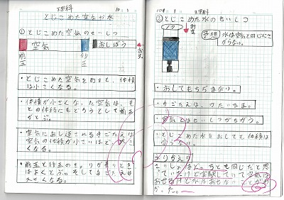 閉じこめた空気や水についてのまとめと振り返りをしっかりしていますね。
