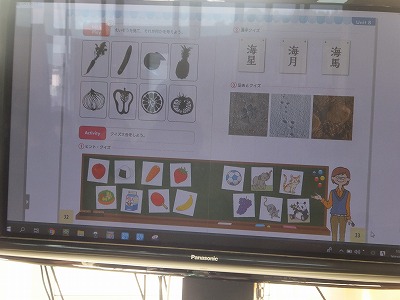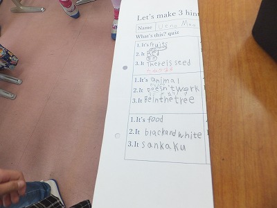 英語の時間は、英語でヒントを出して、何のことを言っているか当ててもらうクイズ大会をしました。