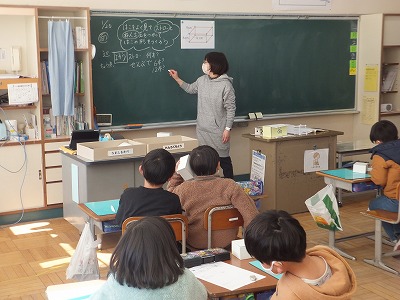 ワークシートに書いたあと、黒板に振り返りを書きました。