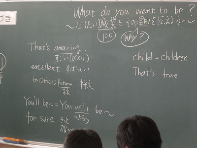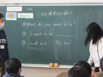 ペアで会話の練習です。「あなたは、何になりたいですか?」「私は、~なりたいです。」
