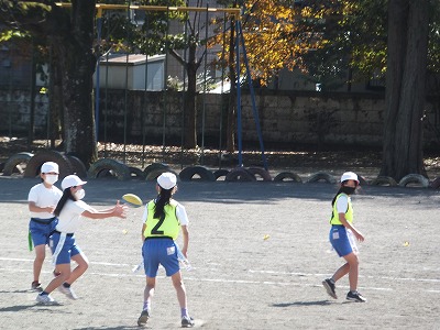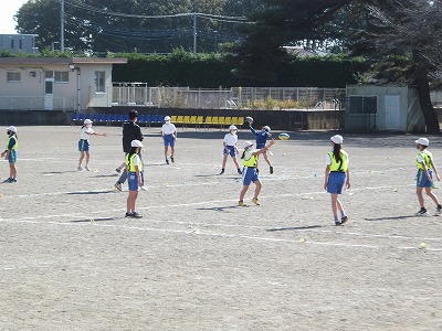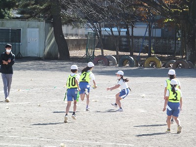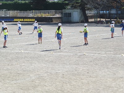 タグラグビーの練習を校庭でしました。