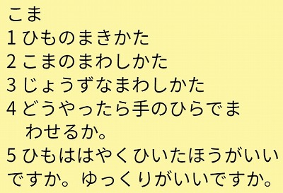 こまやめんこ、竹とんぼ、お手玉などについての質問です。
