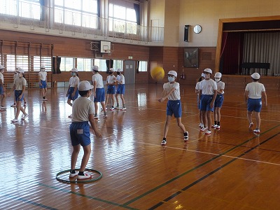 先日からネット型ゲームで、バレーボールの練習をしていますが、今日はレシーブの練習をしました。