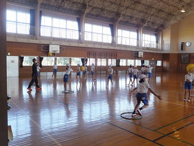 次の人が、トスを上げやすく返してあげるという意識がないようで、ストレートにレシーブを返す子が多かったです。体育においても先を読むことは大切ですね。