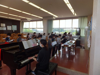 校歌斉唱です。素晴らしい歌声が響きました。やっぱり声を出せるっていいことです。