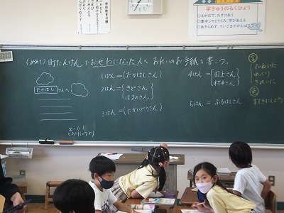 ワークシートに書いたあと、黒板に振り返りを書きました。