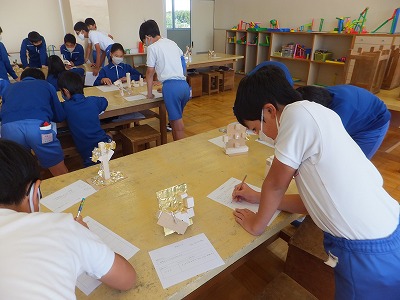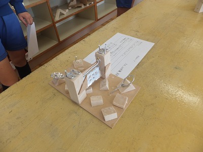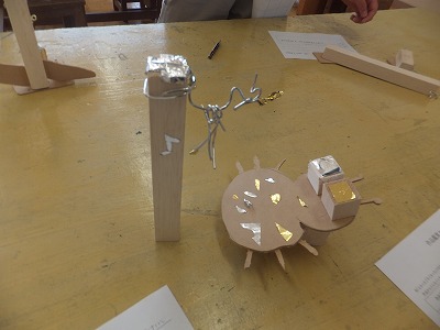 木と金属でチャレンジが完成しました。今日は友達の作品の鑑賞です。