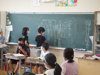 ワークシートに書いたあと、黒板に振り返りを書きました。