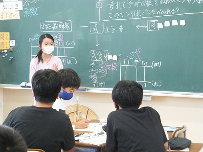 黒板に書いてあることでおかしいところについて話し合っています。