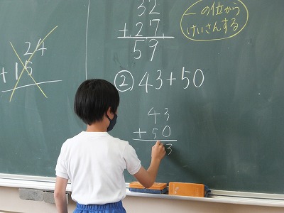 ワークシートに書いたあと、黒板に振り返りを書きました。