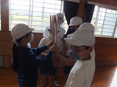 待っている間に、聖火リレーのトーチを触らせていただきました。