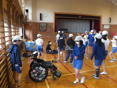 終わった後も金田さんと交流をしていました。金田さんの車いすにも興味津々です。