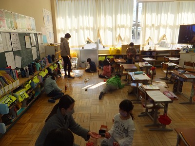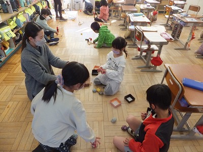 火曜日に時間が足りなかったので、教室で昔遊びをしました。